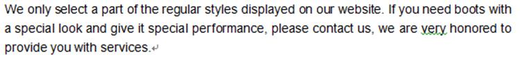 Sea, measaimid cáilíocht na dtáirgí mar an chéad bheocht d'fhorbairt fiontair. Tá ár gcuid buataisí ar ardchaighdeán. Ní úsáidimid ach amhábhair a chomhlíonann caighdeáin idirnáisiúnta comhshaoil.